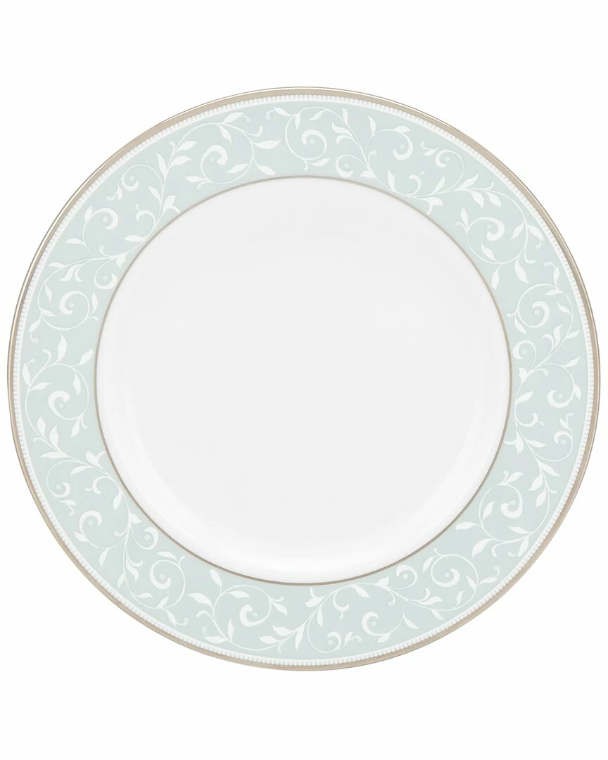 - The elegant and serene Opal Innocence Blue Salad Plate features a pristine white surface and a delicate motif of scrolling dots inside of a soft blue frame. This ornate and durable bone china salad plate is accented in precious platinum, and is dishwasher-safe for added convenience.