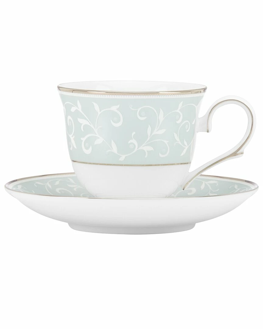 - Ideal for an elegant and lavish tea time, the ornate and sophisticated Opal Innocence Blue Teacup features a scrolling dot motif of leaves and vines. This pristine white and soft blue durable bone china teacup is dishwasher-safe, and is accented in precious platinum.