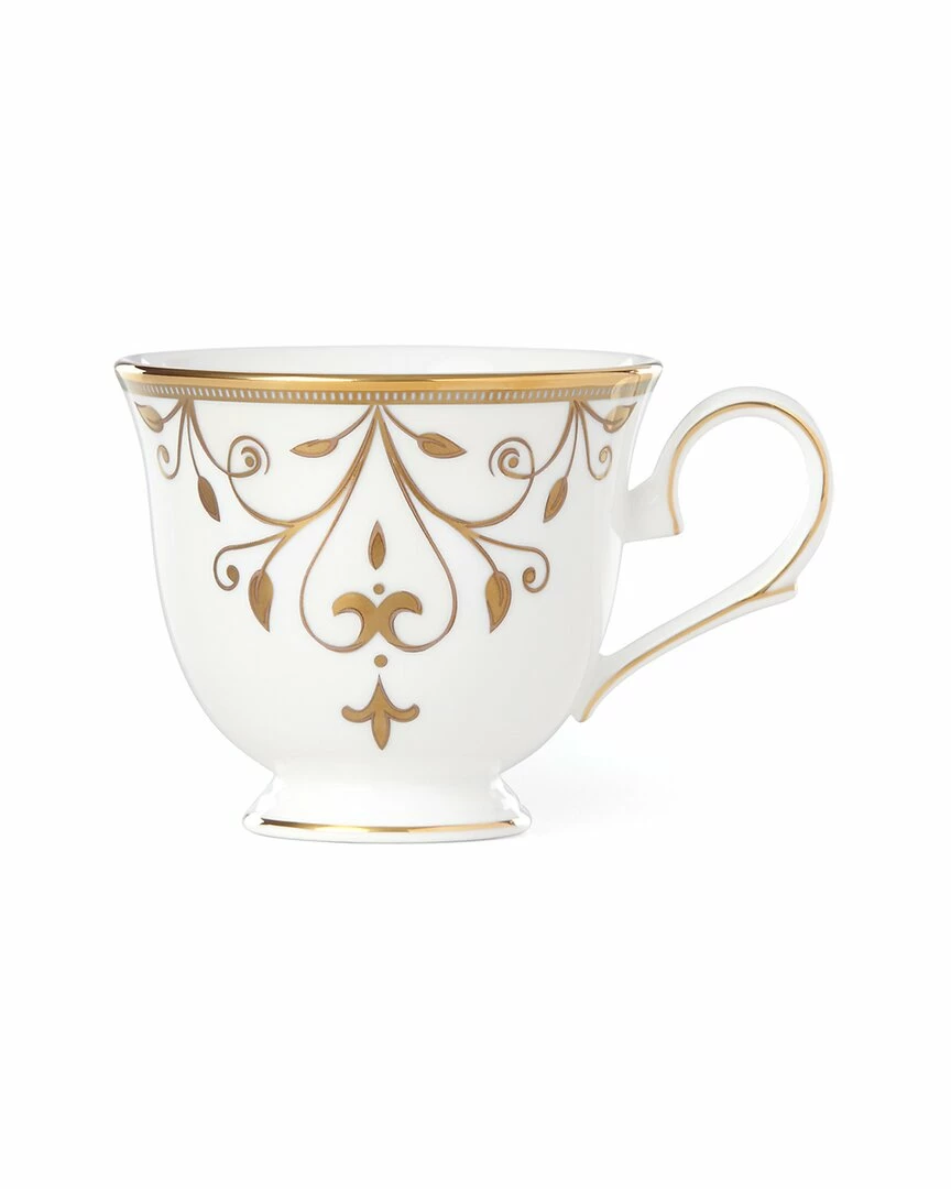- Ideal for an upscale coffee or tea time, the stylish and ornate Opal Innocence Scroll Gold Teacup features a subtle scroll motif. This ornate and durable bone china cup is dishwasher-safe for added convenience, and features a handsome rim of precious 24-karat gold accents.