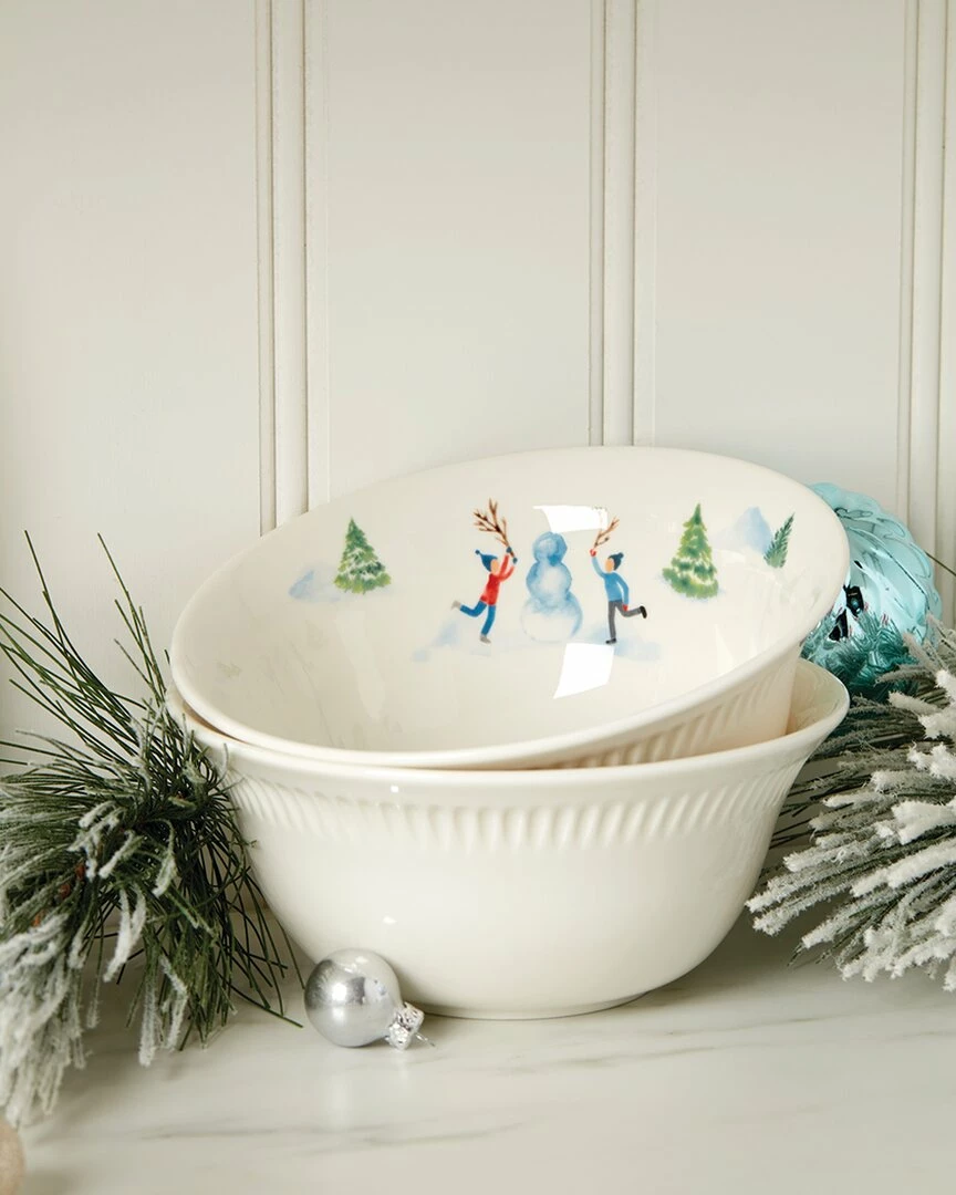 - Design details: set your table for the season with this nostalgic update to the classic profile collection. Each piece features the same durable, white porcelain craftsmanship, but now with a serene winter scene that celebrates the joy of a snow day. This 4-piece bowl set is both dishwasher and microwave safe for easy convenience when you’re heating up a warm bowl of soup or cleaning up in between making snow angels in the backyard.